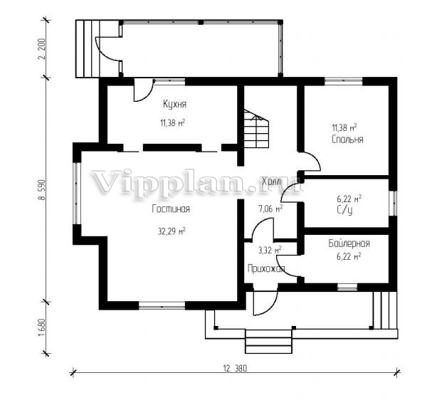 | Размеры дома: | 8.59м×12.38м |