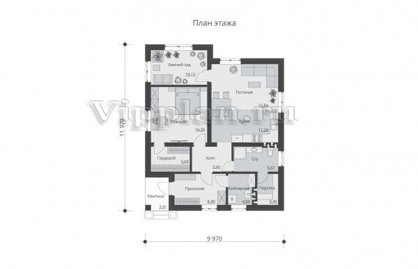 | Размеры дома: | 11.97м×9.97м |